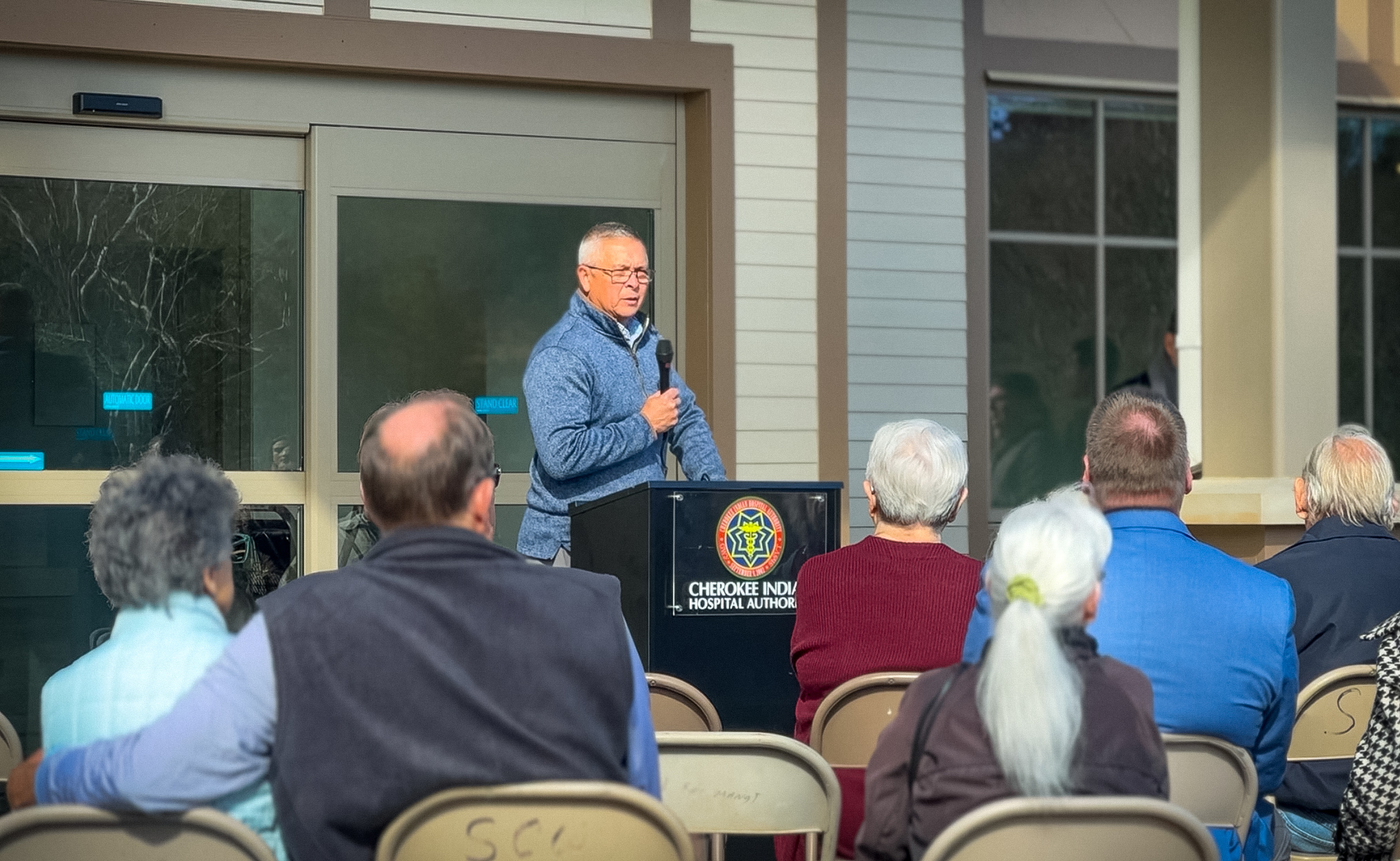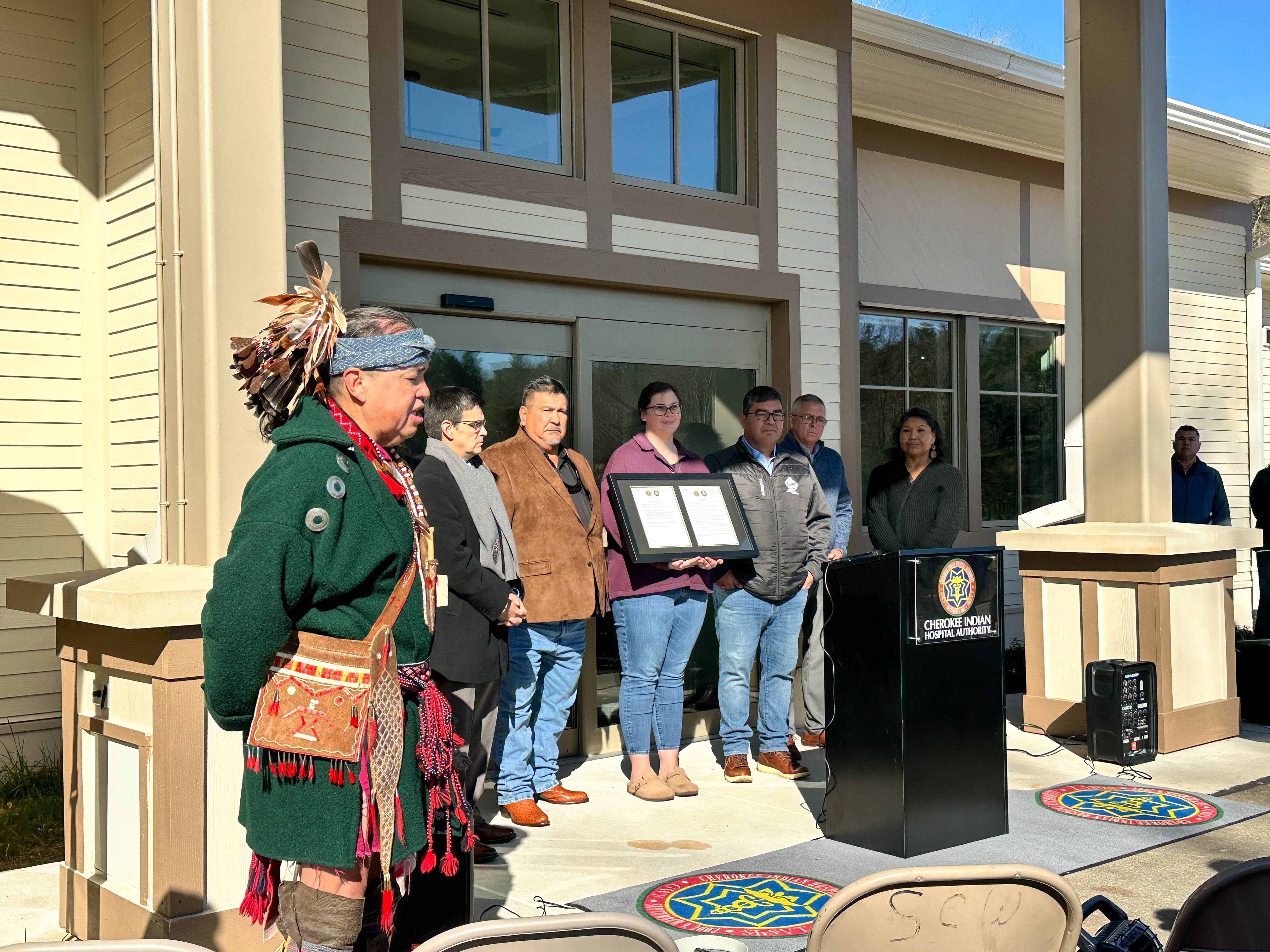 Principal Chief Michell Hicks joined the ceremony to congratulate the community and recognize the many hands behind the project. He spoke to the resilience of the Cherokee people and the importance of continuing to invest in health care access for citizens living outside the Qualla Boundary. He noted that the new clinic strengthens the Tribe’s commitment to bringing high-quality, culturally grounded health care closer to where families live.
