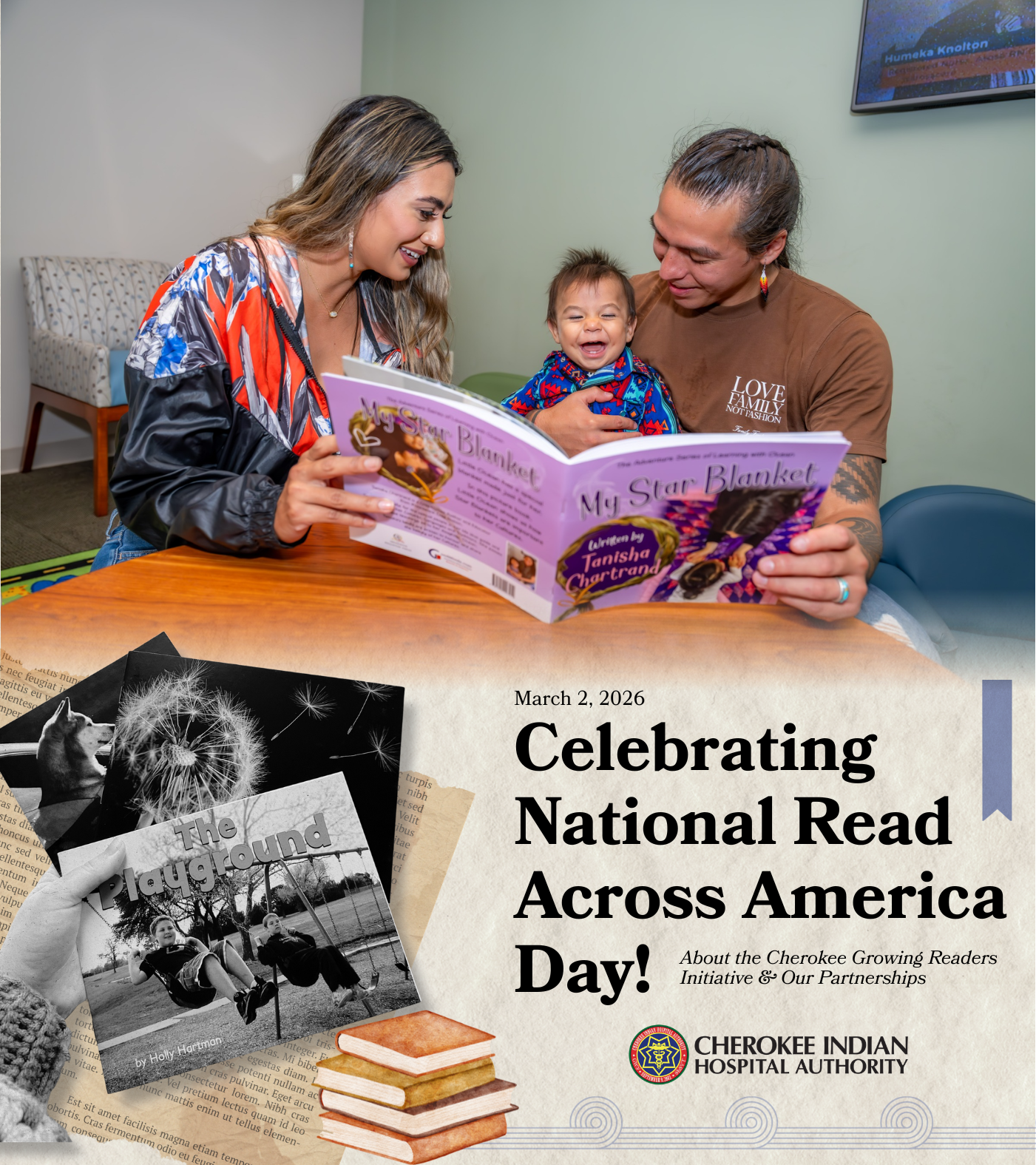 Cherokee Central Schools, along with the First 100 Books, Unite for Literacy, the National Center for Families Learning, and local partners like the Center for Native Health, are helping launch this initiative with support from the NCFL’s Sharon Darling Fund. Through this project, partners work with families and organizations to place books and book gardens in community spaces like CIHA, mail books directly to families, and support the creation of books that celebrate Cherokee language and culture, all developed in collaboration with the community. “Cherokee Growing Readers is an initiative that puts books into the hands of children and families through free book gardens, nurturing a lifelong love of reading and connection.”